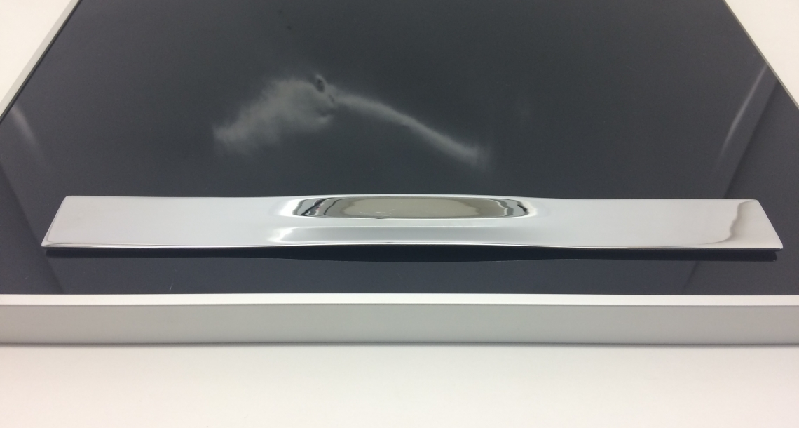 Puxador de zamak colado no vidro ou MDF.
