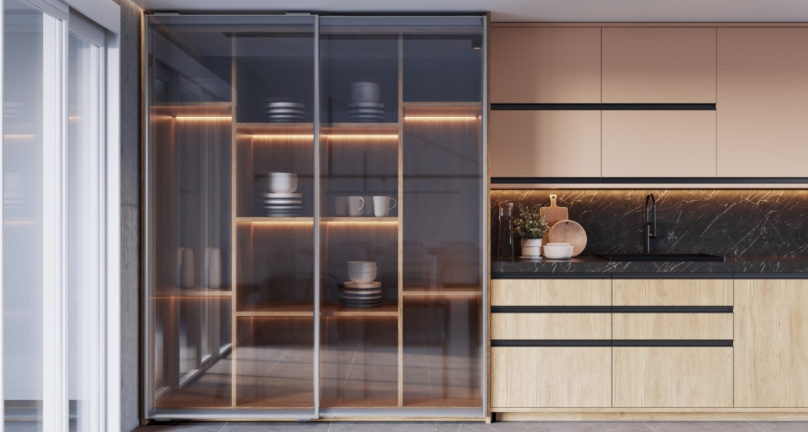 Mas portas suspensas grandes precisam de perfis com reforço porque o sistema de correr exerce mais força nas portas.